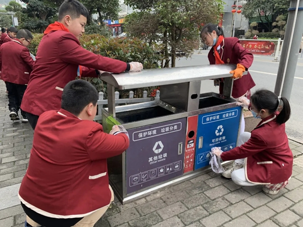 3月4日上午,实验小学校两校区分别开展了师生街头志愿服务活动。